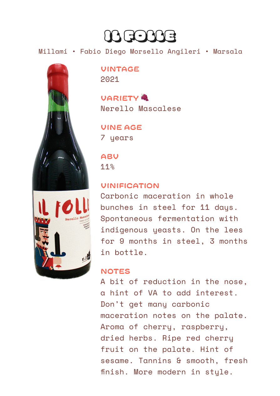 Vinification: Carbonic maceration in whole bunches in steel for 11 days. Spontaneous fermentation with indigenous yeasts. On the lees for 9 months in steel, 3 months in bottle. A bit of reduction in the nose, a hint of VA to add interest. Don’t get many carbonic maceration notes on the palate.