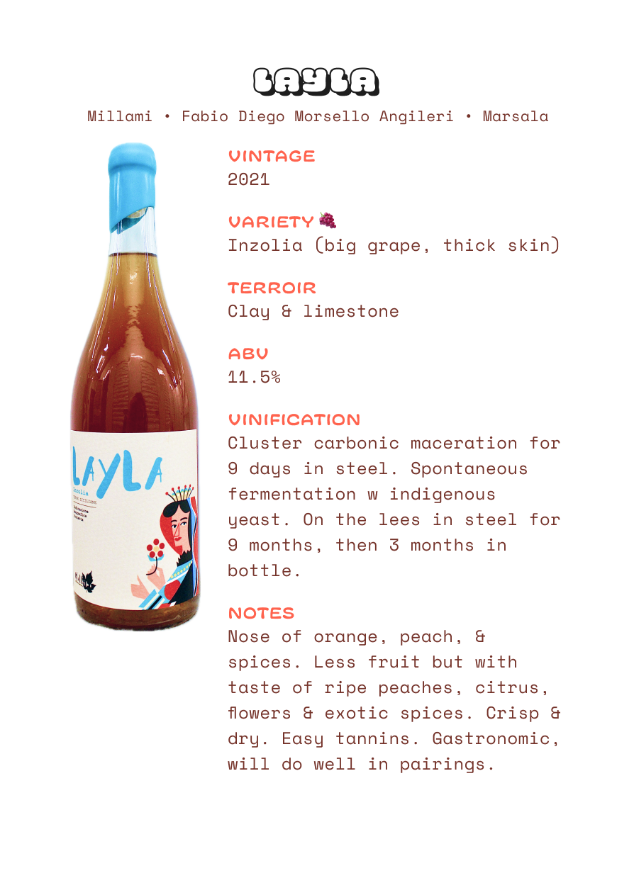Vinification: Cluster carbonic maceration for 9 days in steel. Spontaneous fermentation w indigenous yeast. On the lees in steel for 9 months, then 3 months in bottle.