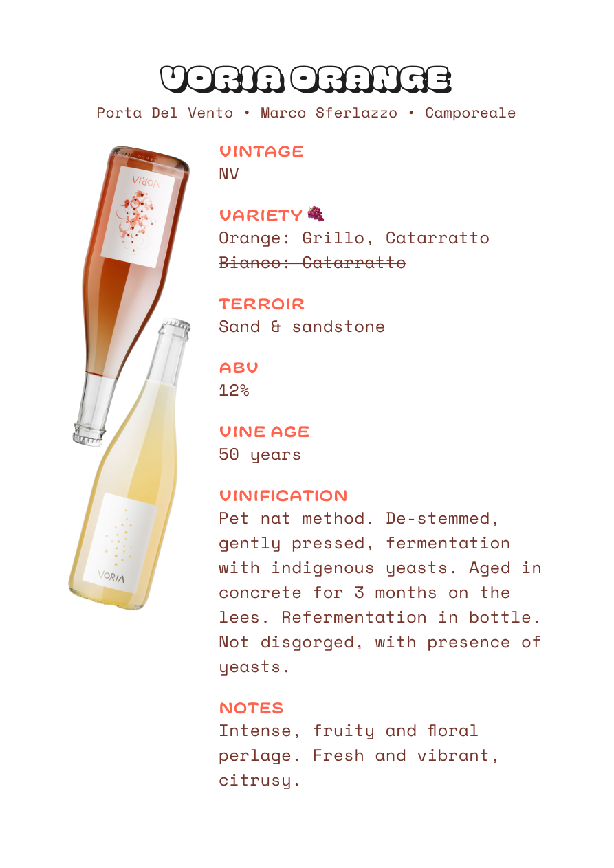 Notes: Intense, fruity and floral perlage. Fresh and vibrant, citrusy.